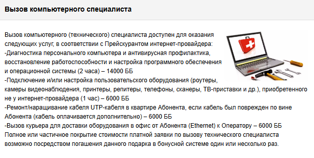 Если ваша заявка входит в перечень дополнительных услуг, то вызов специалиста можно оплатить (полностью либо частично) воспользовавшись подарком "Вызов компьютерного специалиста" в бонусной системе.